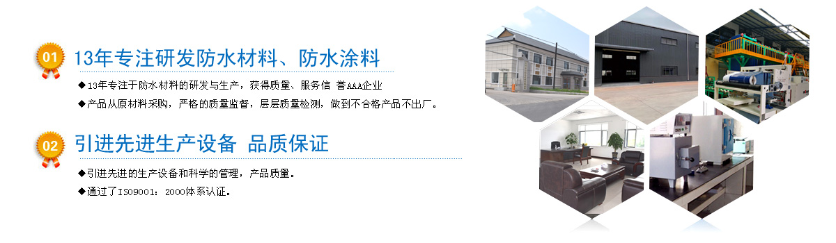 13年專注于防水材料的研發(fā),獲得工業產品生產許可企業; 嚴格按照IS09001質量管理體系標準進行管理......
